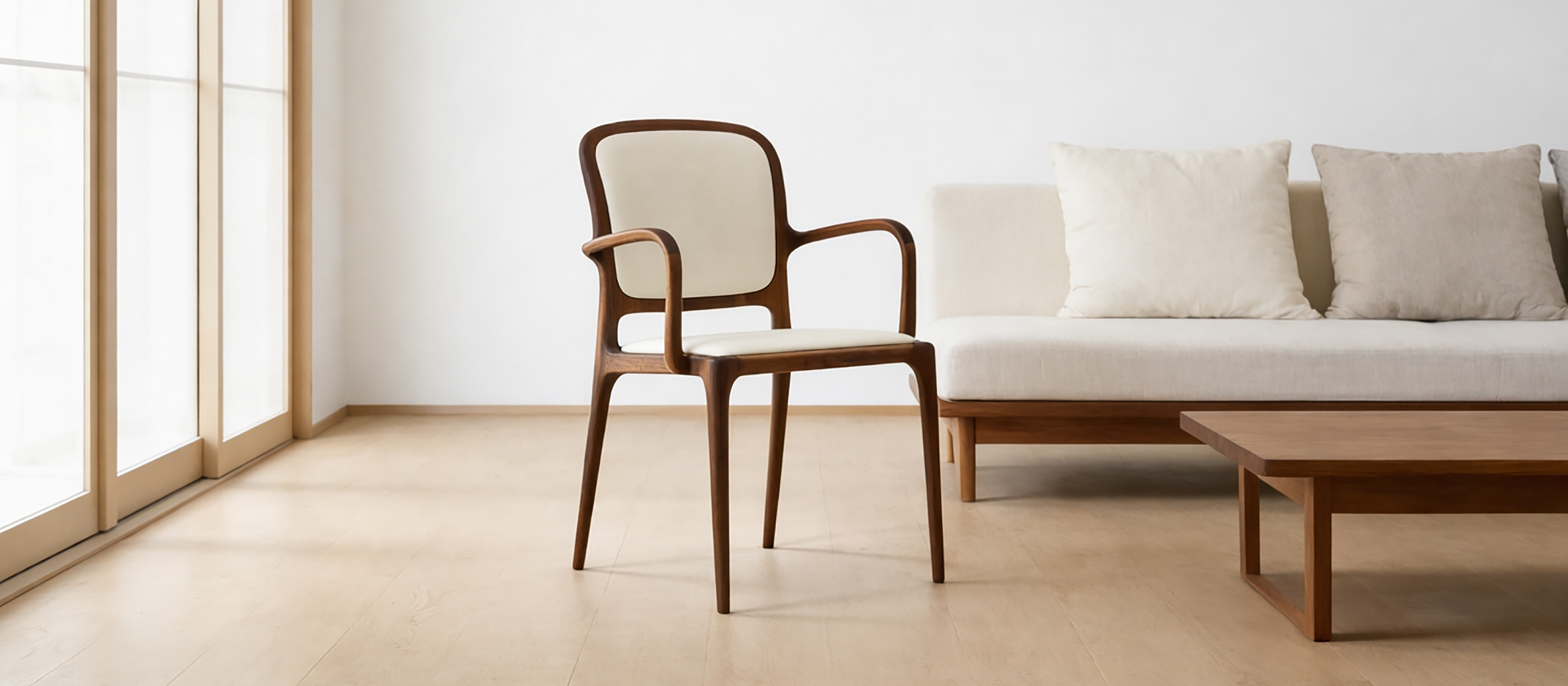 ブラックウォールナット材の天然無垢材アームチェア