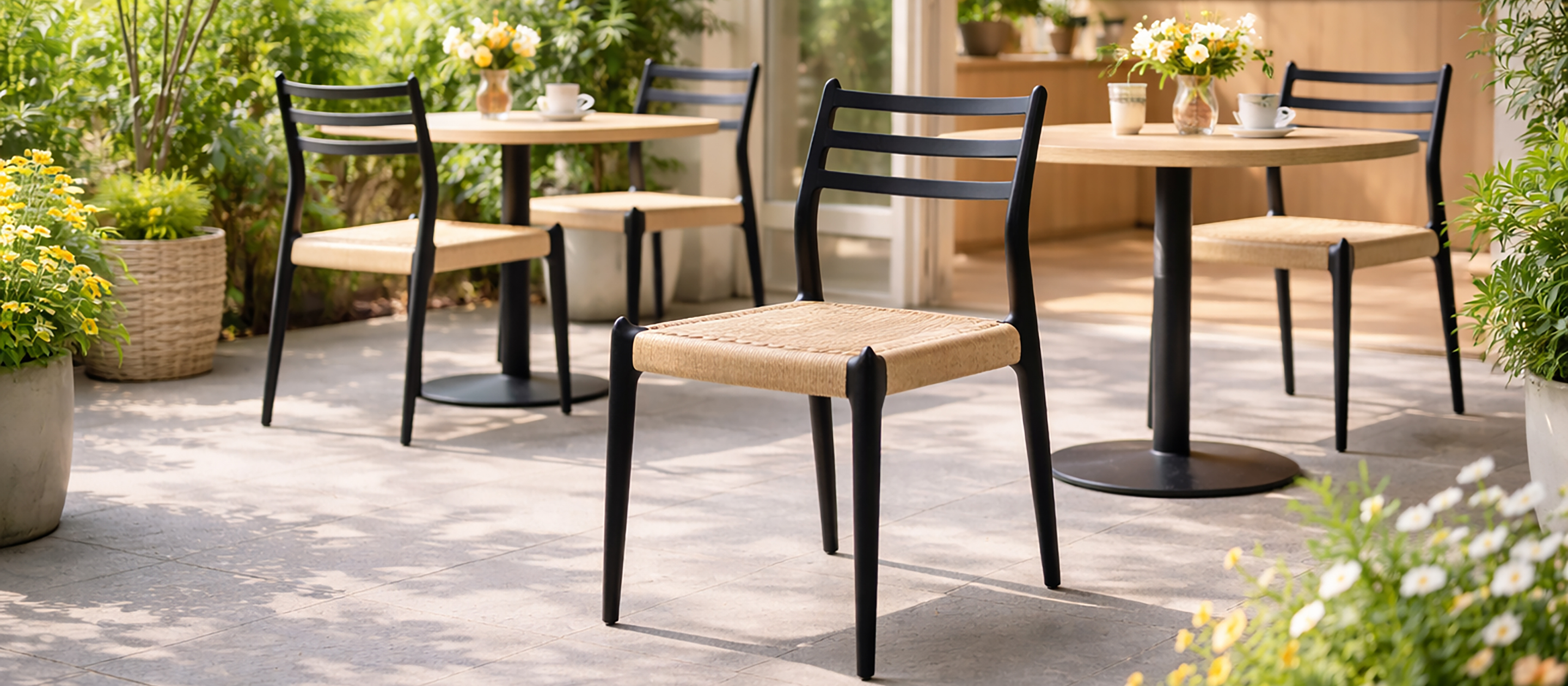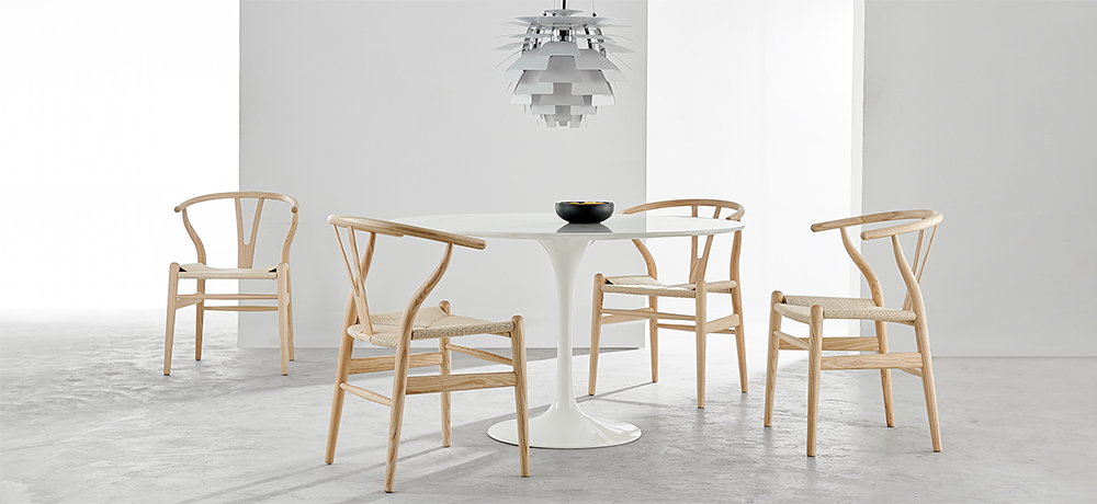 手編みの座面を備えたアッシュ材のダイニングチェア。