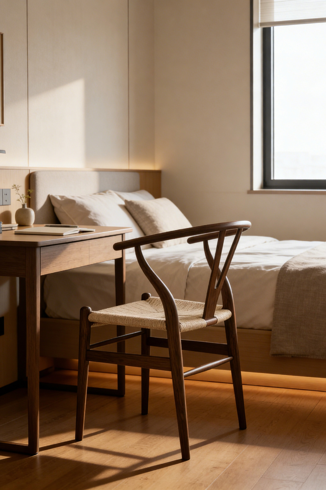 静けさの中に佇む、美しい木の椅子。