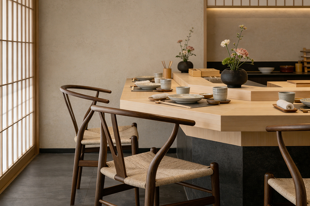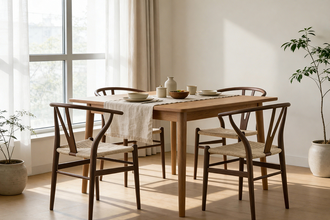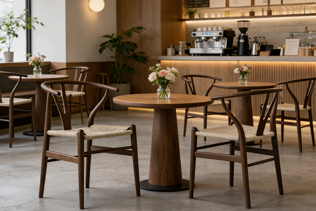 落ち着いたウォールナットの色調は、ダイニング、リビング、書斎、カフェ空間など、さまざまなインテリアに自然に調和します。