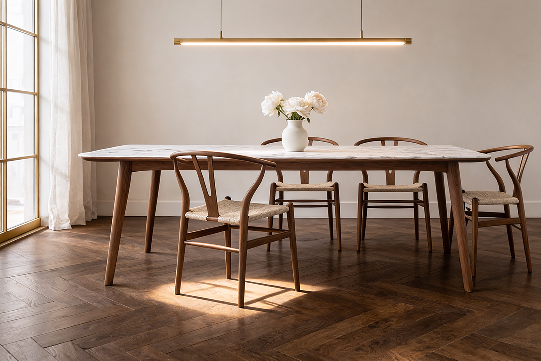 上質な素材が響き合う、静かなダイニング。